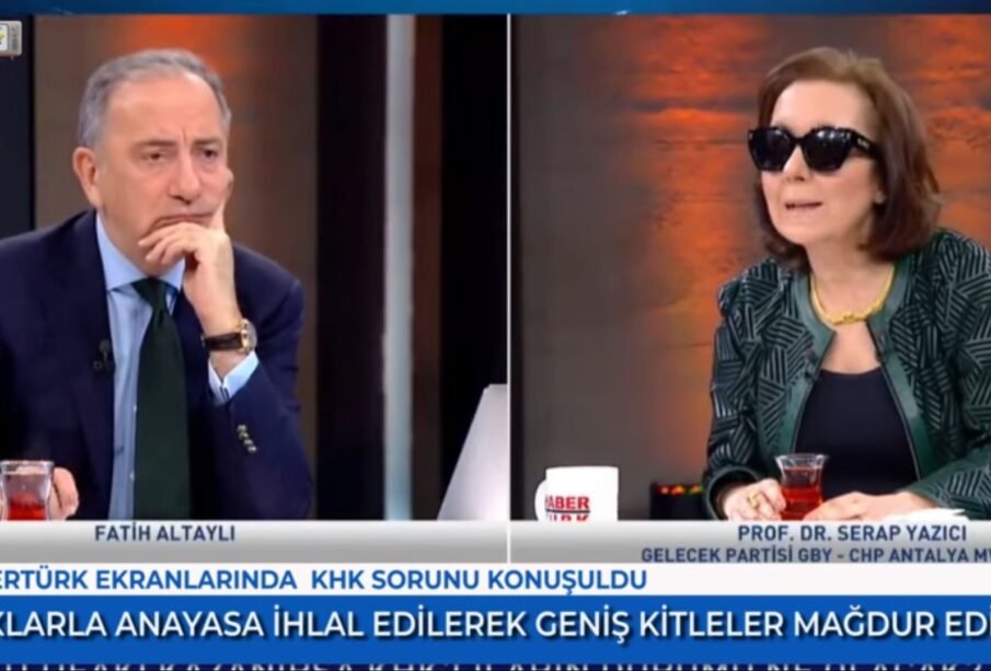 Habertürk ekranlarında Fatih Altaylı’nın KHK sorusuna Gelecek Partili ve CHP Antalya Milletvekili Adayı Prof. Dr. Serap Yazıcı, “Türkiye hiçbir zaman gerçek bir hukuk devleti olmadı ama hiçbir zaman da bu kadar geniş bir kitleyi mağdur edecek şekilde anayasa ihlal edilmemişti” şeklinde cevap verdi.