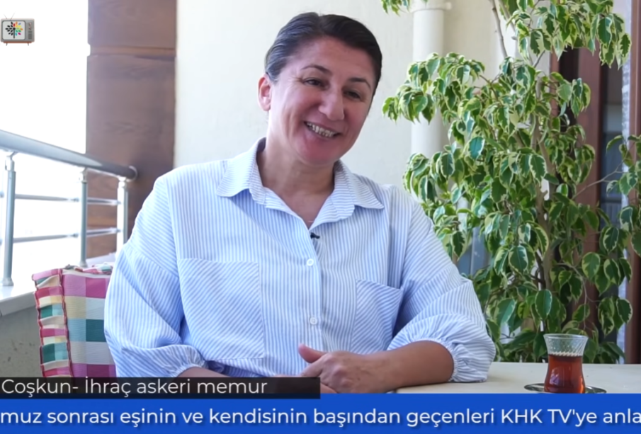 Eşi TSK mensubu olan ihraç askeri memur Selma Coşkun, eşinin ve kendisinin başından geçenleri KHK TV’ye anlattı. 15 Temmuz sonrası çok sıkıntılar yaşadıklarını aktaran 2 çocuk annesi Coşkun “Eşim TSK mensubu. Eşim herhangi bir olaya karışmadığı halde cezaevine atıldı. Bana eşi cezaevinde olan personel listesini hazırlattılar. Listenin en altına da kendi adımı ekledim. Bu yüzden ihraç olacağımı tahmin ettim”. dedi. Süreçte çocuklarının büyük travmalar yaşadığını aktaran Coşkun “Eşim önce beraat aldı daha sonra tekrar cezaevine gönderildi. Bu örgütle herhangi bir bağımız olmadı. Yargıtay savcısı da beraat istedi ancak Yargıtay mahkum etti” ifadelerini kullandı.