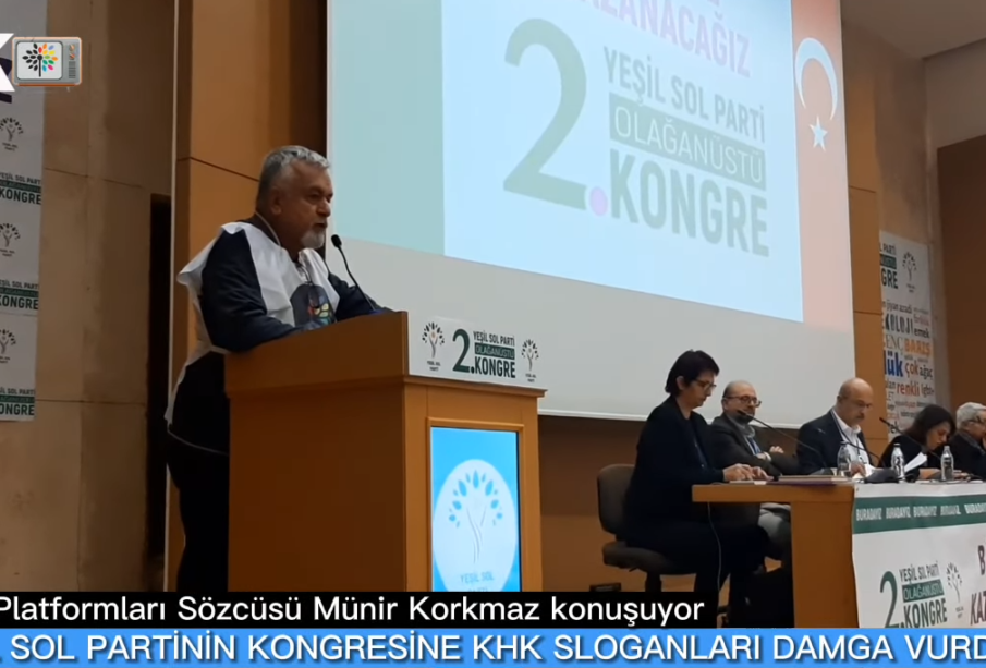 Yeşil Sol Parti’nin 2. olağan Genel kuruluna KHK sloganları damga vurdu. Kongrede KHK Platformları Sözcüsü Münir Korkmaz da bir konuşma yaptı.